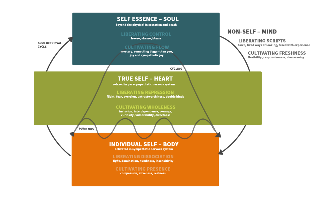 What this model depicts: A holistic overview of experience that includes Body, Heart, Mind and Soul